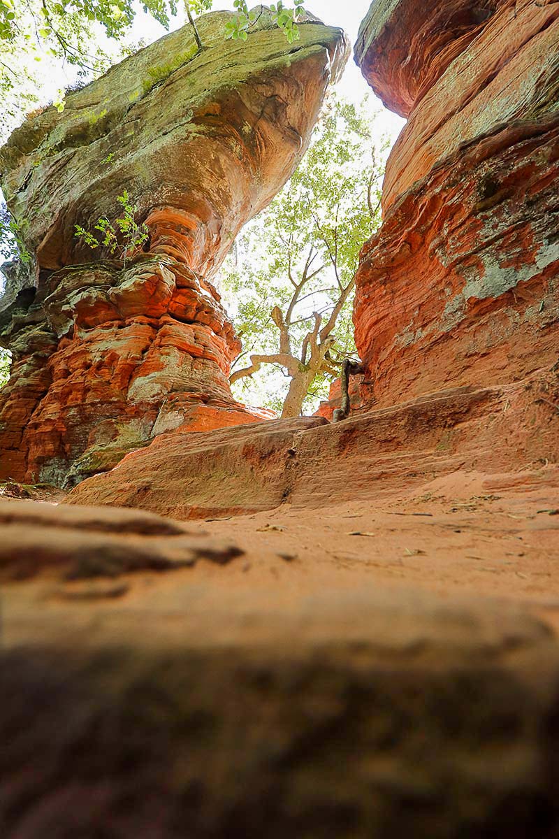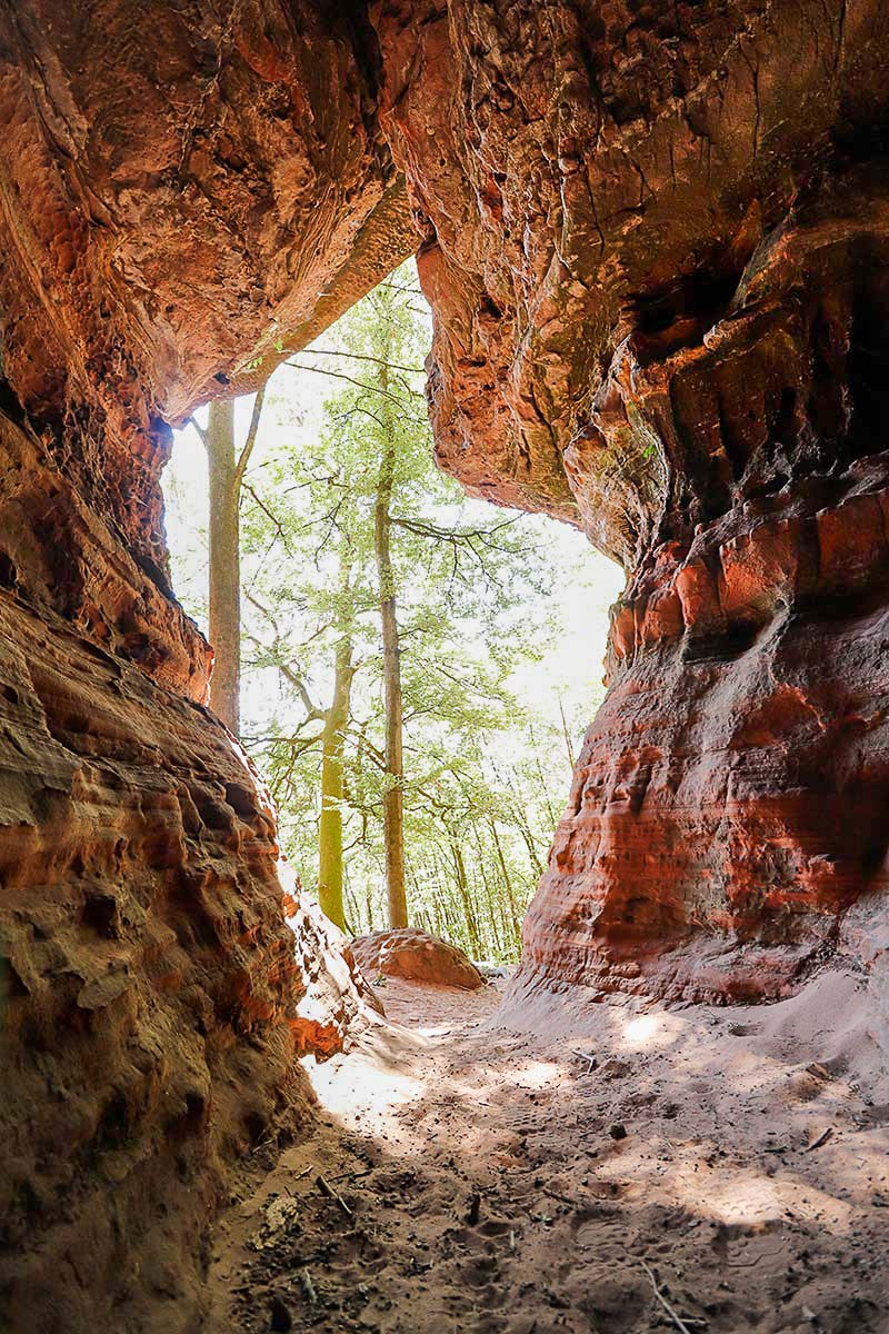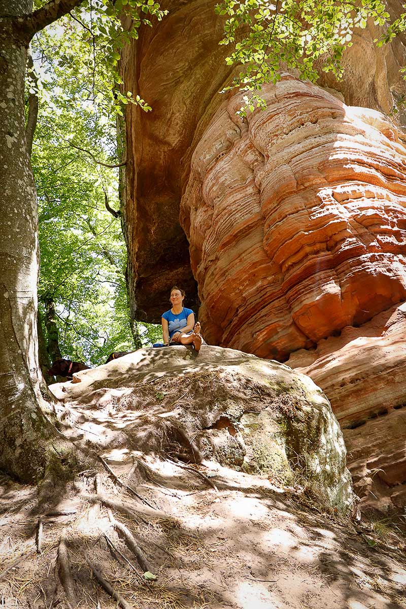 Die Wanderung selbst ist mit einer Länge von unter 10 Kilometern gut zu bewältigen und eignet sich sowohl für erfahrene Wanderer als auch für Familien, da man dank der vielen Wege flexibel auf die jeweilige Tagesform reagieren kann. Und international wird es auch noch, denn du kannst am südwestlichen Ende des Altschlossfelsens die französische Grenze überqueren. Gehst du von hier eine Stunde weiter kommst in Roppeviller an, der nächsten französischen Gemeinde. Den Weg sparen wir uns an diesem Tag, obwohl es auf dem Weg noch einige Felsformationen zu bestaunen gibt.
