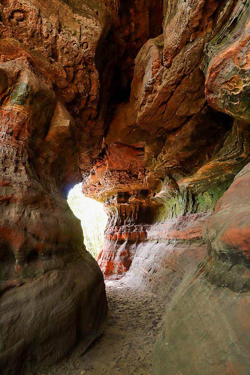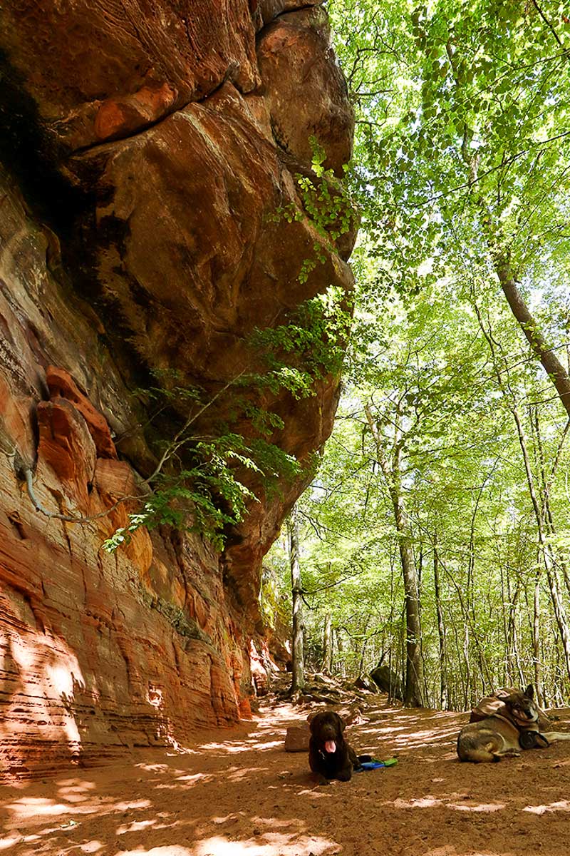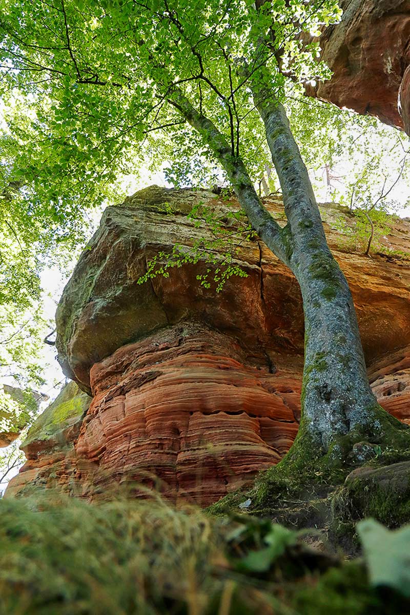 Das Highlight ist natürlich die gewaltige wie geheimnisvolle Felsformation – übrigens die Größte in der Pfalz. Knapp anderthalb Kilometer lang und bis zu 30 Meter hoch. Wir kommen aus dem Staunen nicht mehr heraus. Unsere Fotokamera läuft bei unseren Schnappschüssen heiß.
