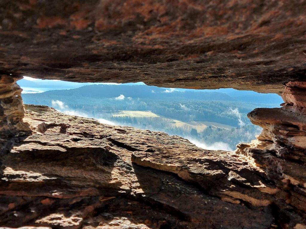 Im Felsenland rund um Dahn spürst du den Charakter des südlichen Pfälzerwaldes. Die verschiedenen Gesteinsschichten sorgen für eine bunte Vielfalt an Tälern, steilen Hängen und Erhebungen. Die oberen Steinschichten, der Buntsandstein, wurde im Laufe der Zeit von Wind und Wetter abgetragen und sorgt für einzigartige Formationen mitten in der Landschaft. Menschen machten sich das relativ weiche Gestein ebenfalls zu Nutze und bauten ihre Burgen in und um die Felsen.