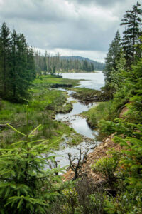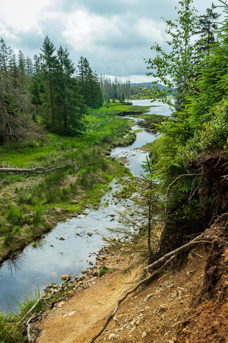 Für uns geht heute einmal rund um den Oderteich: Durch Fichtenwälder mit einigen der ältesten Fichten im Harz. Wir folgen Stegen über Moore und Bäche sowie abenteuerlichen Pfaden über Wurzeln und Steine. Rollator, Kinderwagen und ähnliches lasst ihr lieber im Auto am Parkplatz Rehberger Grabenweg.