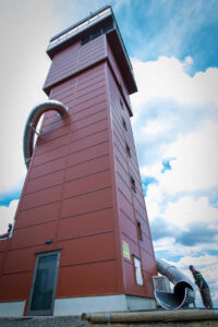 Oben wird euch einiges geboten: Aussicht hinüber zum Brocken, dem höchsten Berg im Harz und von Norddeutschland und Luftlinie nur knapp fünf Kilometer entfernt. Außerdem Überreste alter Skisprungschanzen, Essen und Trinken, eine zwölf Meter lange Rutsche an der Außenseite vom Wurmbergturm und die Berg-Erlebniswelt für Kids.